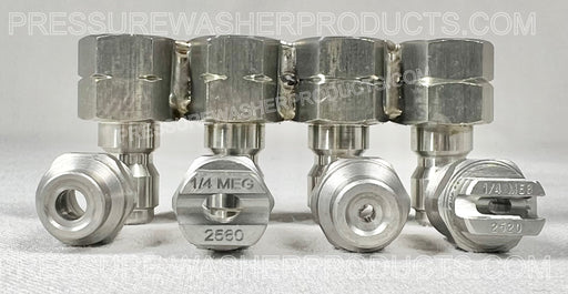 View full detailsJROD 4-Way stainless steel nozzle holder contains nozzles: #0050, #2550, #0020, #2520 or any nozzle in that range for your 8 GPM pressure washer....
